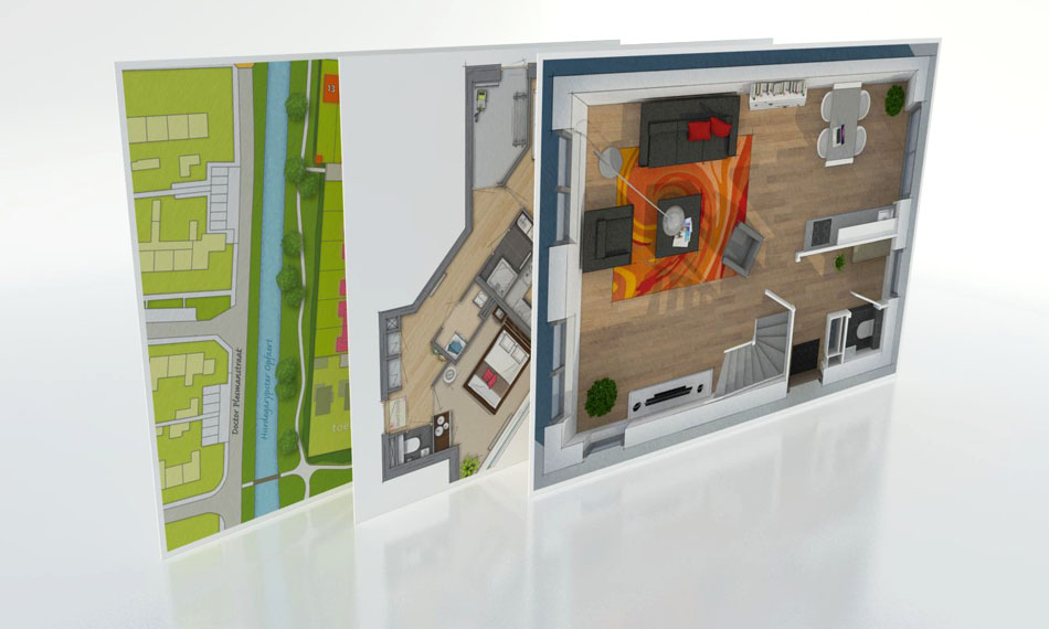 Visual Conceptz levert 2D en 3D schets interieur plattegronden, situatietekeningn en overig verkoopmateriaal.